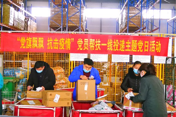 商丘市睢县分公司党支部开展了“党旗飘飘 抗击疫情”党员帮扶一线投递主题党日活动。广大党员积极帮助应对生产处理场地和基层支局所人手不足的难题,加快邮件处理和投递时效。目前,党员志愿帮扶人数达20人,累计转运分拣处理邮件5000余件。