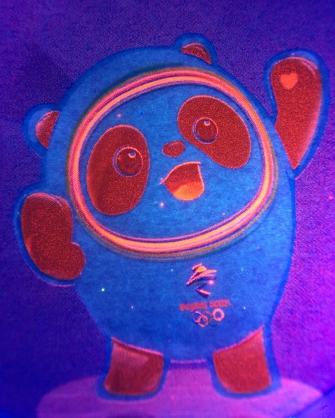 图为黑色文字在紫外灯下发出红色荧光