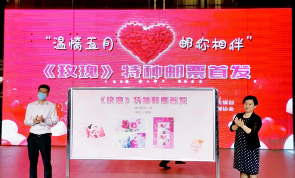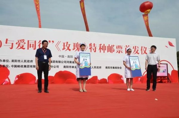 5月20日,中国邮政发行《玫瑰》特种邮票。当天上午,南阳市人民政府与河南省邮政分公司在南阳月季博览园,联合举办了 “2020与爱同行”《玫瑰》特种邮票首发仪式。