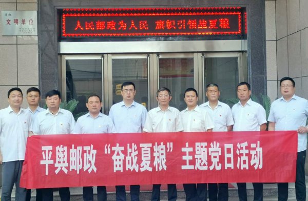 夏粮项目活动期间,为充分发挥党员先锋模范作用,驻马店平舆县分公司党总支开展了“旗帜引领促发展,奋战夏粮做表率”主题党日活动。该分公司组织党员深入全县各乡镇基层网点,现场帮助支局做好客户走访、粮商维护和厅堂服务等工作,同时深入各大收粮点,及时为售粮群众送上矿泉水、毛巾、清凉油、风油精、小扇子等消暑物品,协助支局人员为用户办理邮政金融业务,以实际行动践行了“人民邮政为人民”的服务宗旨,受到了群众的广泛好评。