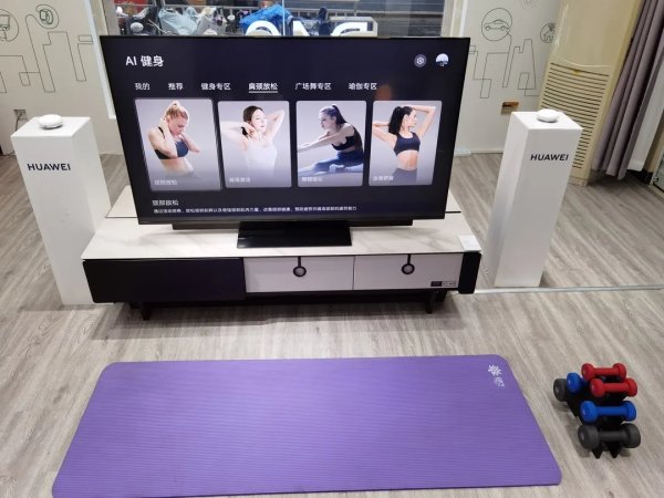 为了打造更好的全场景体验,智慧厅采用了3+N的全场景陈列,覆盖“AI健身+AI客厅+AI办公”三大场景及产品陈列桌,将邮政和华为产品进行一一呈现,整体内部空间更加流畅,人流的引导更加智能清晰。