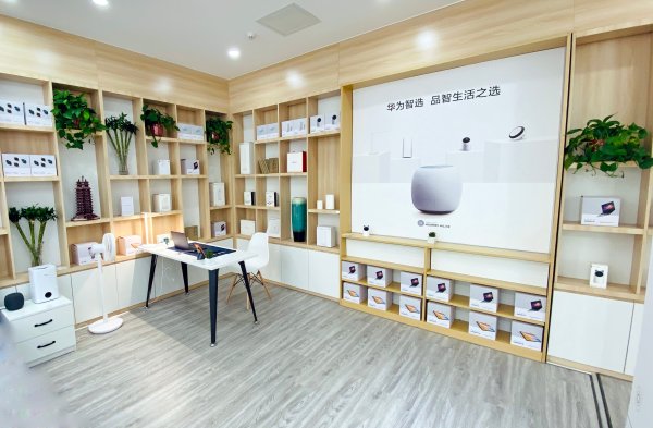 AI客厅展现了各类华为智能家电,进门即可通过语音操控灯光、窗帘、摄像头等,客户置身在场景中体验智慧联动带来的“未来感”生活。