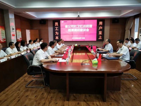 6月19日至20日,省公司党委书记、总经理杜卫红调研湘潭分公司。他先后深入岳塘区板塘铺支行、湘潭邮件处理中心、岳塘区长塘揽投部(营业部)、湘潭县花石网点、韶山主题邮局及滴水洞主题邮局、韶山游客换乘中心、韶山景区邮政报刊亭、四清种养殖专业合作社,详细了解湘潭分公司金融、寄递、农村电商、文化传媒等业务发展现状,现场察看邮件处理中心处理场地,了解处理能力和运行情况,与基层员工面对面交流,认真倾听意见和建议,并召开座谈会听取湘潭分公司发展情况汇报。
