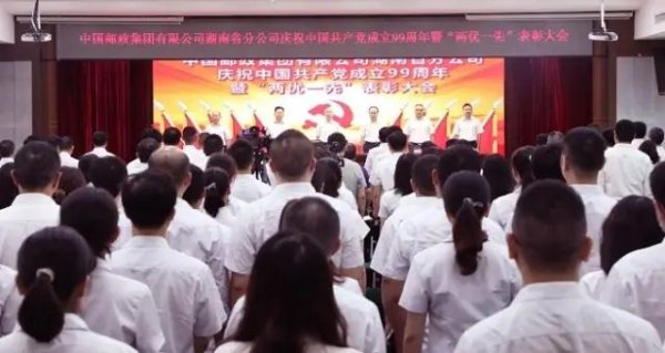 九万里风鹏正举,新征程砥砺初心。7月1日上午,中国邮政集团有限公司湖南省分公司以电视电话会议的形式,召开庆祝中国共产党成立99周年暨“两优一先”表彰大会,共同庆祝党的生日。会议号召全省邮政各级党组织和广大员工要坚持以习近平新时代中国特色社会主义思想为指导,以党的政治建设为统领,以先进典型为引领,团结带领广大干部员工,锐意进取,拼搏奋进,将初心使命转化为“六个责任担当”,为筑牢“四梁八柱”,推动湖南邮政高质量发展,实现“二次崛起”凝聚强大的力量。着力打造“讲政治守纪律、善学习勇创新、敢担当有作为、强作风抓落实”的模范机关,全面提高机关党的建设质量和水平,充分发挥机关表率和风向标作用,带领全省广大职工开拓创新、团结进取,为推动湖南邮政高质量发展提供坚强保证。省公司党委书记、总经理杜卫红出席会议并讲授专题党课;党委全体委员出席会议。