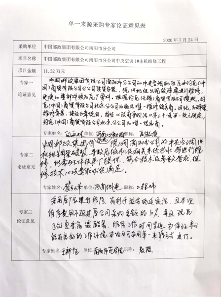 附件:单一来源采购专家论证意见表
