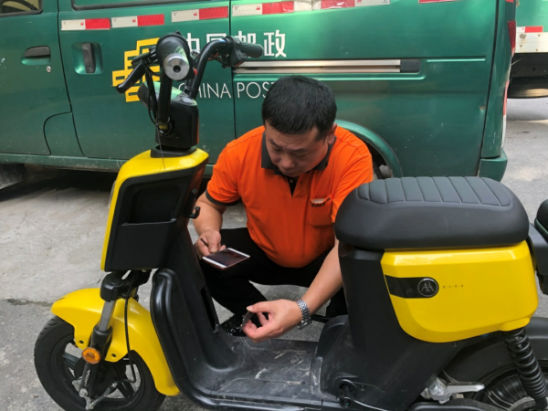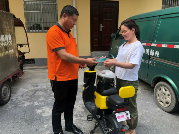 6月11日下午,长沙市开福区伍家岭的邓女士收到了长沙市车管所寄来的电动车牌。这是长沙第一块“全程网办、邮政邮寄到家”的电动车牌,由长沙市邮政分公司同城中心投递员陈清国投送。