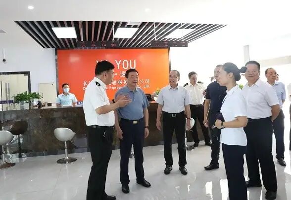 8月5日上午,陈飞副省长视察湖南国际邮件快件监管中心(长沙国际邮件互换局),省交通运输厅厅长赵平,省邮政管理局局长朱汉荣,省邮政分公司总经理杜卫红、副总经理刘俊峰,长沙邮局海关关长刘冬煌等领导陪同调研。