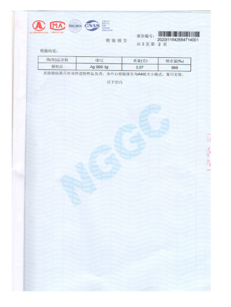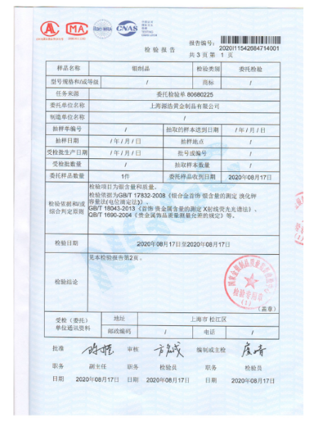《紫禁呈祥 四季安康》银封检验报告
