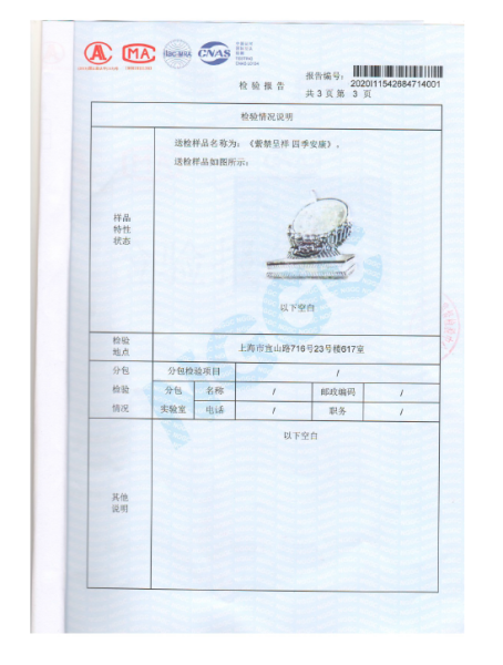 >《紫禁呈祥 四季安康》银封检验报告