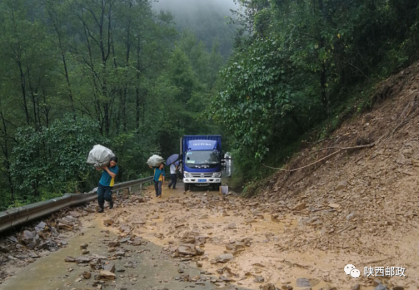 正值汛期,镇巴县连日来普降大雨,县城水位上涨,山区道路多处落石。8月12日晚间至8月13日的大雨,造成了巴庙镇至碾子镇邮路塌方,运送邮件的车辆无法通行。碾子支局长黄涛得知情况后,立即向县分公司上报并启动《镇巴县分公司汛期邮件安全应急预案》,第一时间组织支局投递员到塌方现场查看,在确保人员、车辆安全的前提下冒雨转运邮件,支局长和投递员肩挑背扛,终于在当天15:10将车上的417件邮件安全转运到碾子邮政支局。