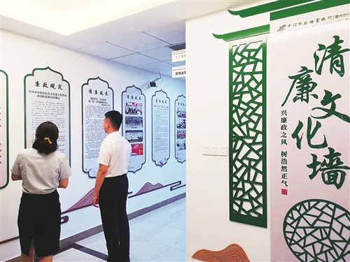 “清廉文化墙就像是一缕清风,以图文并茂的呈现方式让大家接受廉洁文化熏陶,也取得了实实在在的宣传效果,值得继续传承和发扬。”在参观现场,惠州市分行党委书记、行长廖贤斌说。