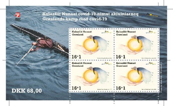 格陵兰岛邮政将于8月10日发行抗击疫情邮票,格陵兰岛政府卫生部希望通过邮票引起人们对病毒的敬畏,全民积极抗击疫情。设计师以水和光做素材,表达人与人之间的爱心、保护环境,我们每个人都身处其中,需要人人努力来阻止病毒传播。