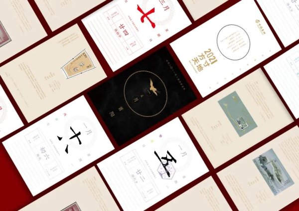 封面“方寸天地”四字和“2021”年份均由我国著名艺术大师韩美林先生撰写,产品所配2021年贺岁邮票上的牛也是韩先生手笔。