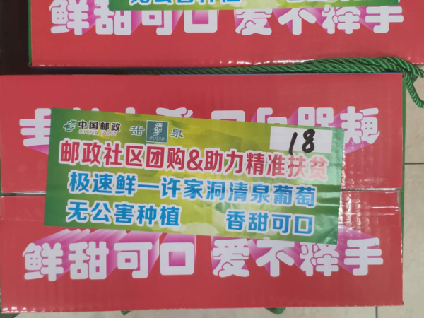 “昨天下午才下的单,今天早上就到家门口的邮政网点了,比去超市方便多了,价格还便宜。”家住南岭山庄的王女士来附近的邮储银行网点领取线上团购商品,看到新鲜的清泉葡萄高兴地说道。截至8月19日上午,苏仙区邮政分公司通过社区团购项目从“邮乐优鲜”平台销售葡萄5281单,实现销售额11.83万元,受到了当地政府、合作社和农户的高度认可,获得市民们一致好评。“许家洞清泉葡萄”社区团购项目也给清泉村带来上万份订单,预计总销量在10万斤以上。
