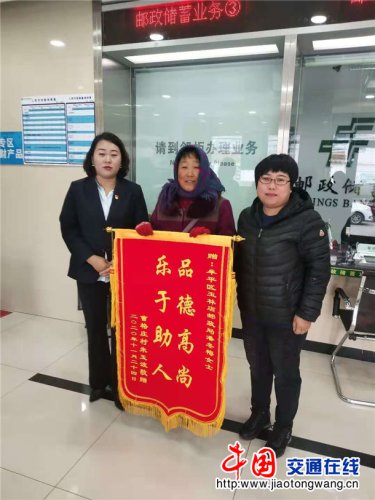中国交通在线:山东烟台邮政公司牟平分公司热心投递员帮助找回走失儿童,家人送锦旗致谢