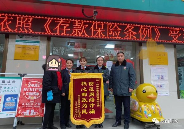 “非常感谢邮政工作人员的火眼金睛,识破了网络诈骗,为我挽回了经济损失,太感谢你们了!”客户平女士(化名)一边将一面锦旗送到咸阳兴平西吴镇营业所邮政工作人员手中,一边感激地说。
