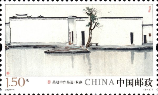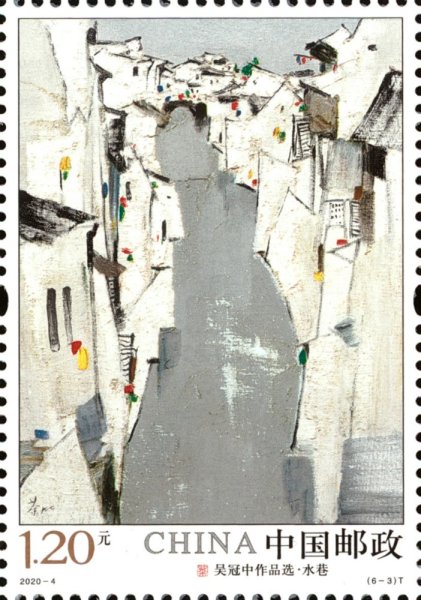 中国邮政2020年3月20日发行《吴冠中作品选》特种邮票1套6枚。