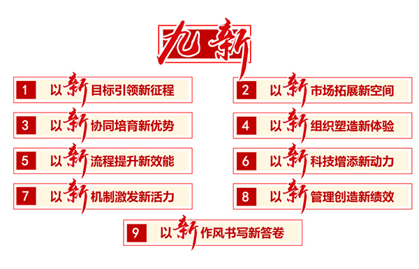 八要以新管理创造新绩效。强化财务管理。建立健全市场化用工配置机制,加快调整优化人员配置结构。强化审计与采购管理。积极推进分业经营分类核算。全面落实“比学赶帮超”工作。