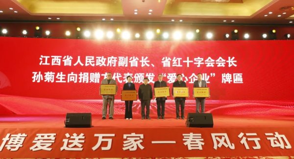 日前,由江西省红十字会、省直机关工委联合举办的“博爱送万家—春风行动”抗疫急救包捐赠仪式在南昌召开。会上,江西省邮政分公司与人保财险江西省分公司、江粮集团等5家企业向江西省红十字会、江西省红十字基金会捐赠50万份抗疫急救包,用于助力省内常态化疫情防控工作。江西省人民政府副省长、省红十字会会长孙菊生出席仪式,并向捐赠方代表颁发了“爱心企业”牌匾。