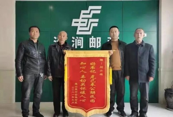 3月16日上午,榆林市清涧县老舍窠便民服务中心寨山里村村民代表将一面写有“好书记 克己奉公解民困 知心人 亲切关怀暖人心”的锦旗送到清涧县邮政分公司,以此对清涧县邮政分公司“第一书记”刘小雄在该村驻村期间帮扶工作表示感谢。村主任郝世昌拉着分公司总经理的手感谢道:“邮政公司给咱们送来一个好书记啊,多少年没法解决的吃水问题、用电问题,刘书记来了全给解决了,现在村子里日子好过多了!”