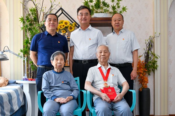 6月23日,省分公司党委书记、总经理杜福一行,先后看望慰问了邮政离休老党员时国奇和颜光,将“光荣在党50年”纪念章戴在了他们的胸前,同时代表省分公司党委向全省邮政企业广大老党员老干部致以亲切问候和崇高敬意。