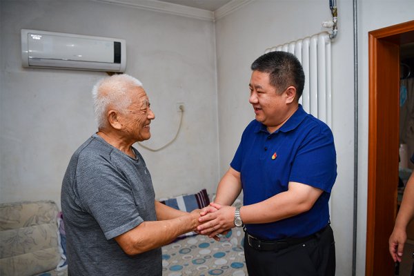 “老人家身体情况怎么样?”“家里有没有困难需要企业帮助解决?”在时国奇家中,杜福与时国奇及其家人拉家常、问冷暖,并叮嘱他一定要注意身体健康。90岁高龄的时国奇同志,1948年3月参加革命,党龄已有67年,是新中国第一代邮政人,曾在中共鄂豫区党委行政公署所设的信阳交通局从事交通通信工作,默默无闻地为邮政事业奉献了全部。