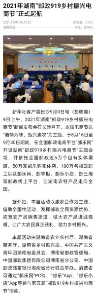 新华网湖南频道:2021湖南“邮政919乡村振兴电商节”正式启航