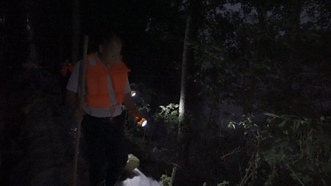 扶沟县分公司抗洪抢险突击队深夜巡堤