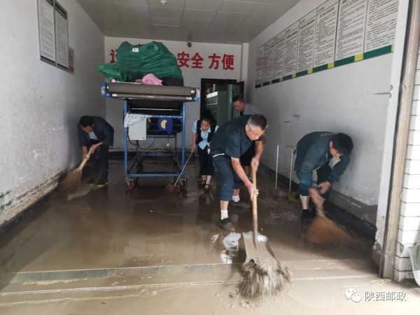 镇坪县分公司党支部迅速行动,立即组织开展人员撤离、设备及邮件转移以及灾后清淤、安全保畅等工作。该公司邮件处理中心、揽投部地处下新街低洼地段,洪峰时期最高水位近两米,一楼办公区、收寄营业厅、报刊分发室、邮件处理室全部遭到水淹,电源线路、安检设备、办公用品全部泡水。19日10时,洪水退却后第一时间,该公司党支部组织全体党员、志愿者开展清淤工作。大家铲淤泥、搬物品、清洗地面……尽可能快速恢复邮政服务,确保通信畅通。