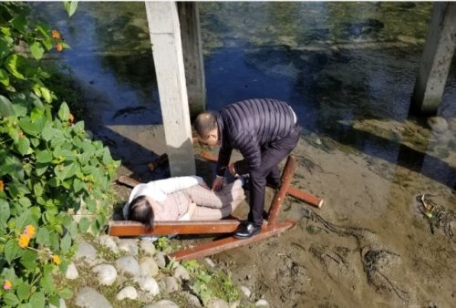 邮储银行四川省分行资产保全部总经理伍波同志恰好路经此处,听到桥上有人大声呼救:“快来人啦!有人坠河啦!”素来热心肠的他不假思索,立即奔往事发地,发现老人坠河的位置虽然河水很浅,但她是从桥上高处摔下,摔倒处还有一同掉落的木栏杆残片,应该受伤不轻。河边道路十分湿滑泥泞,伍波不顾寒冷、更不顾危险,立即纵身跃到河中。为避免杂物对老人造成二次伤害,伍波先小心翼翼搬离了其身边的木栏杆碎片,同时仔细观察老人身体状况,不断努力试图唤醒老人的意识。