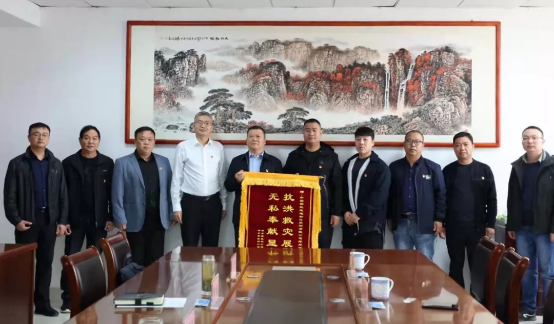 10月26日,郑州市郑东新区白沙镇魏庄村村委书记魏军峰、副书记陈国良一行,代表魏庄村群众给河南邮政物流业务分公司送去一面写有“抗洪救灾展风采 无私奉献显真情”的锦旗,对该分公司在抗击郑州“7.20”特大暴雨期间协助魏庄村安置转移救援群众,以及做好疫情防控工作表示感谢。