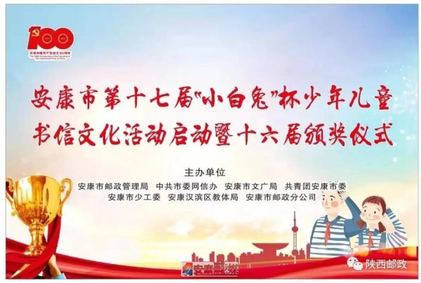 12月17日下午,由安康市邮政管理局、市委网信办、市文化和旅游广电局、团市委、市少工委、汉滨区教体局和市邮政分公司联合主办的安康市第十七届“小白兔”杯少年儿童书信文化活动启动暨第十六届书信文化活动颁奖仪式在安康市邮政分公司召开。