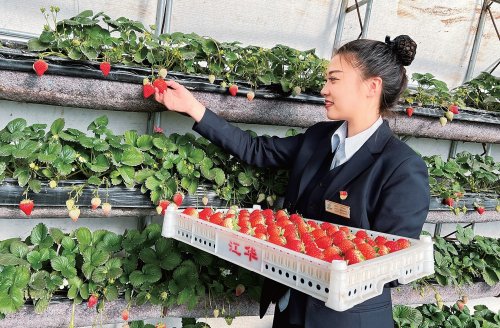 12月24日,辽宁丹东东港市十字街邮政支局理财经理来到支局周边的草莓大棚中帮助客户采摘草莓,并借此开展邮政金融、寄递等业务宣传。今年草莓季,邮航飞机落地丹东,与传统冷链直达一起,保障寄递时限。消费者从邮政购买的草莓时效更快、价格更优、味道更美。