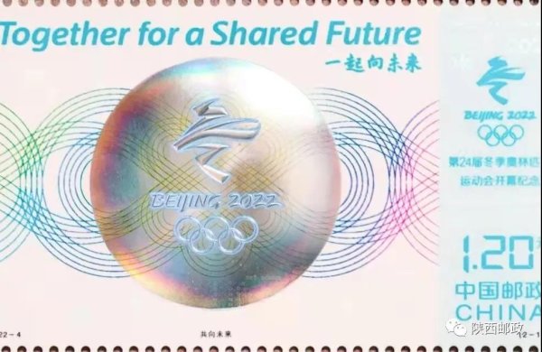 中国邮政于2022年2月4日发行《第24届冬季奥林匹克运动会开幕纪念》纪念邮票一套2枚,邮票图案名称为共向未来、希望之光。全套邮票面值2.40元。邮票计划发行数量为1150万套。