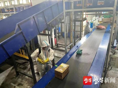 快递来自全国各地,有的还来自疫情中高风险地区,中国邮政集团有限公司南京市寄递事业部副总经理俞翔介绍,邮件抵达南京邮区中心后,邮区中心会对邮车和邮件进行全方位消杀;对于国际邮件和来自中高风险地区的邮件,在卸车后每一个邮件上快递传送带,由专人对邮件进行逐件“六面”消杀。对于所有邮件,南京邮政都是包装拆到哪一层,消毒就做到哪一层,力求防控细节到位。