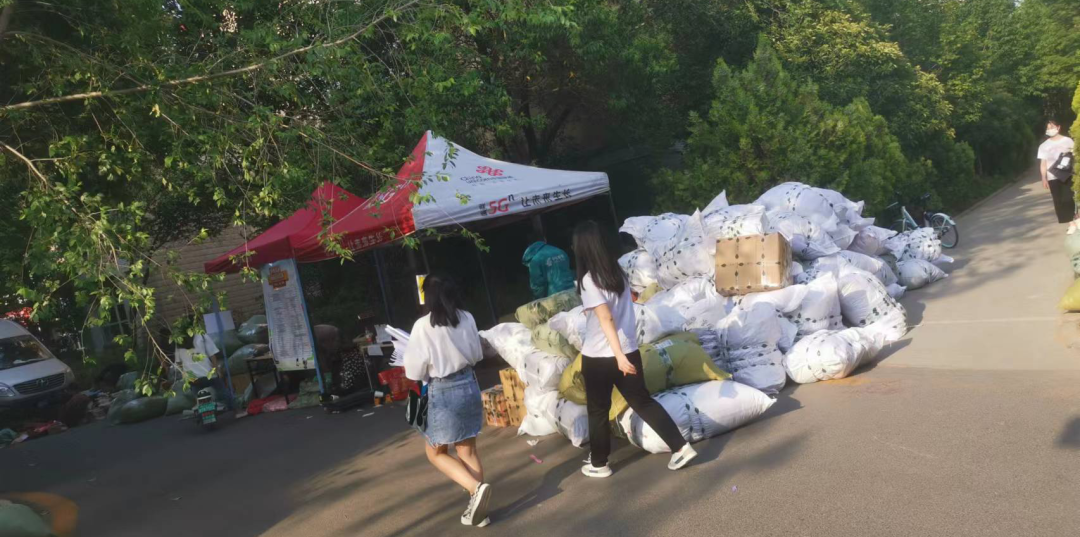 5月30日中午,炎炎烈日下,郑州市高新区莲花街揽投部经理徐哲带领5名揽投员,正紧张有序地收寄河南工业大学学生的校园包裹,让学子们轻装返程、安心离校。