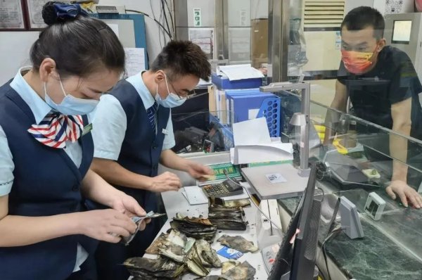 6月4日一大早,一名做生意的用户——薛先生,急匆匆来到了益汉路邮政营业所,支局长黄金艳上前询问时,薛先生拿出一袋火烧残币,问道:“你好,我可以在你们这儿兑换这些烧坏的钱吗?”