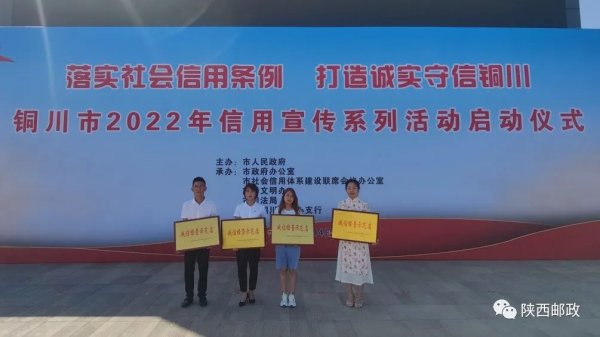 为深入宣传贯彻《陕西省社会信用条例》,加快诚信铜川建设步伐,6月14日,由铜川市人民政府主办,市政府办公室、市社会信用体系建设联席会议办公室、市委文明办、市司法局、人民银行铜川市中心支行承办的全市“落实社会信用条例打造诚实守信铜川”信用宣传系列活动启动仪式举行。在启动仪式上,铜川市社会信用体系建设联席会议办公室宣读了《关于认定铜川市第二批诚信经营示范店的通知》,铜川市分公司南关邮政所、南关邮储营业所代表诚信经营示范店发言。