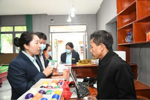 “当然可以,我们邮政不仅有收款二维码,还有基金、理财、保险等业务……你还可以开通手机银行,以后订货转账很方便,也不要手续费哦。”另一边,土比妞牛的同事马玉兰、鲁瑜熟练地为吉觉勒果办理扫码支付业务。