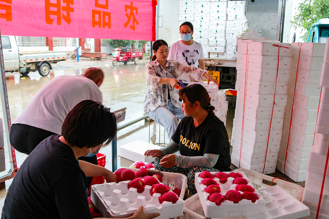 在唐庄镇石屏村,综合便民服务站负责人许来祥忙碌又幸福。在以许来祥为代表的便民站负责人的牵线搭桥下,邮乐新乡馆、抖音、汲速鲜小程序等电商直播平台实现了与各农业合作社对接,建立了特色农产品线上销售专区,为唐庄镇农产品上行提供专业化供应链寄递服务。自2018年以来,当地通过邮政渠道销售鲜桃40万余斤,销售额100多万元;销售土豆、洋葱近20万斤,远销北京、湖北、山西、广东等24个省市,外省市订单占比达90%。