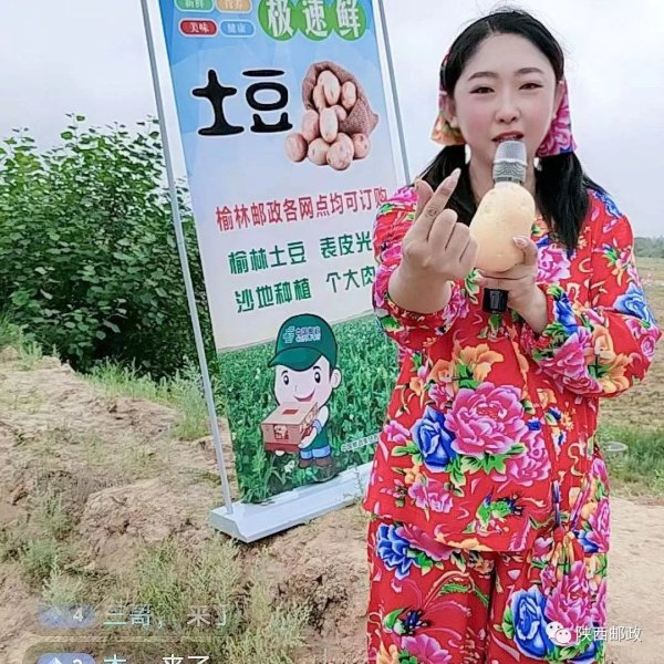 正是在这样的大背景下,榆林市分公司通过精心策划,由邮政职工当主播,通过Ai邮榆林抖音账号,走向田间地头,来了一场热闹的“直播秀”。从早上9点到12点,共有近万人通过直播间观看了榆林沙地土豆基地现场直播。主播穿着具有陕北乡土特色的红袄袄,吸引了众多粉丝进入直播间,主播真诚地介绍了“榆林土豆”的文化、产品亮点和生长地理条件,声情并茂地对“榆林土豆”进行了讲解。