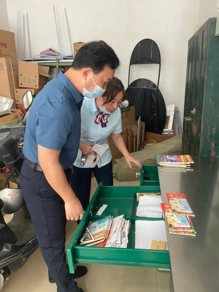 强斌以暗访形式,重点检查了网点防疫、服务、环境卫生等情况,并通过试寄U盘、液体、粉状物,以及询问工作人员如何正确辨别禁寄物品等方式,重点检查了党的二十大期间网点实名收寄、安全收寄要求的执行情况。在亮明身份后,强斌走进投递房,仔细查看消防设备、摆放在地上和置物架上的纸箱,逐一打开所有柜子和抽屉,对网点消防安全、意识形态安全、邮件积压、6S管理等工作进行检查。他还详细了解网点发展情况,并来到位于二楼的“职工小家”,查看员工宿舍、小食堂、会议室等办公和生活环境。