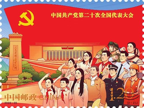 本报讯 中国邮政定于2022年10月16日发行《中国共产党第二十次全国代表大会》纪念邮票一套2枚、小型张1枚。邮票第一图名称为“奋进新征程”,第二图名称为“建功新时代”,小型张图案名称为“庆祝中国共产党第二十次全国代表大会胜利召开”。全套邮票面值为8.40元。邮票计划发行1390万套,小型张计划发行790万枚。