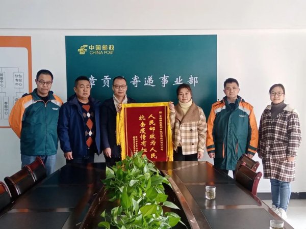 近日,赣州市分公司被章贡区政府表彰为“疫情防控先进单位”,并授予锦旗“人民邮政为人民,抗击疫情有担当”。
