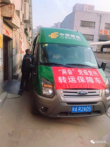 为全力以赴完成好全国“两会”期间党报投递工作,西安市寄递事业部增派专人专车做好相关服务工作。图为专车到达经开普邮揽投部,卸载西安市委市政府订阅的党报党刊。(孟志诚)