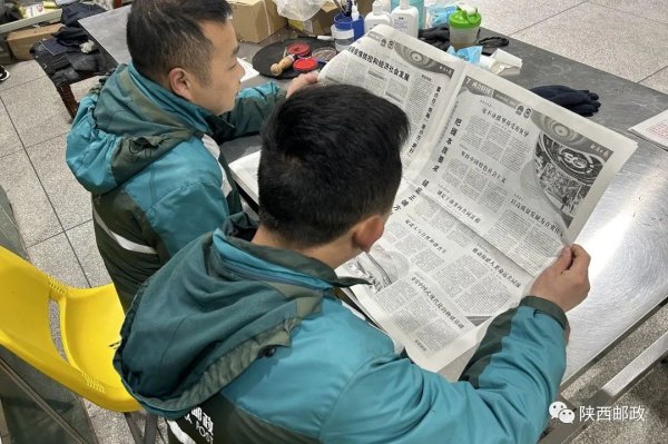 在做好全国“两会”期间党报党刊投递等邮政服务工作的同时,汉中市佛坪县分公司普服班的投递员们还积极利用工作间隙,一起通过党报党刊学习全国“两会”精神。(叶江涛)