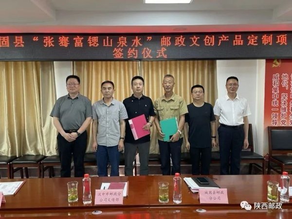 经过前期沟通协作,5月20日上午,城固县分公司成功举行“张骞富锶山泉水”定制项目签约仪式,与城固县文化和旅游局、陕西一群锶享家水业有限公司、城固县市场监督管理局联合推出张骞IP定制饮用水“张骞富锶山泉水”。