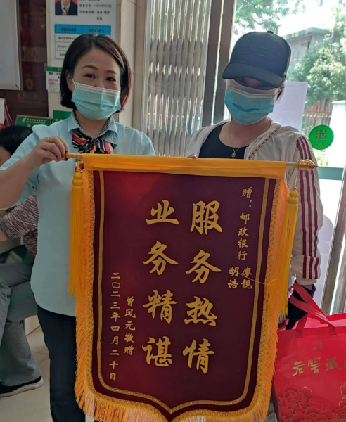 近日,南昌市青山湖区分公司氨厂营业所收到了客户曾女士赠送的锦旗。据了解,曾女士开店做生意,平时会收到大量的零钞和硬币。为了存这些钱,曾女士跑了多家银行被拒。没想到最后在氨厂营业所询问该项业务时,邮政员工二话不说,耐心地帮她清点了零钱,办理完成存款。为了表达感激之情,曾女士特地送来一面印有“服务热情,业务精湛”的锦旗。锦旗虽小,却凝聚了客户无限的真情,更是客户对营业所服务工作的认可。