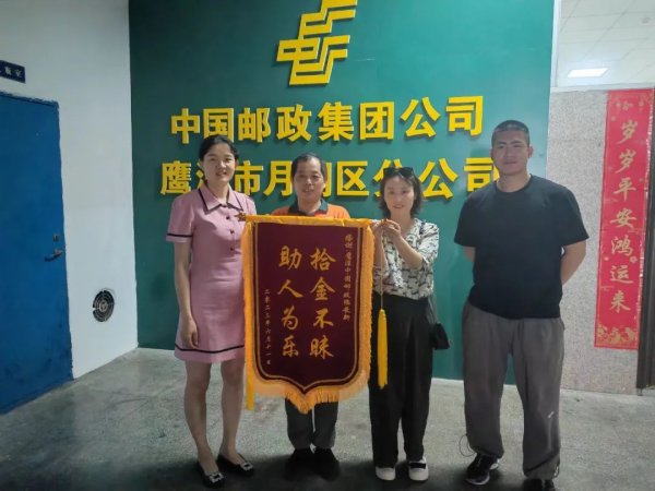 时值正午,天气炎热,陆展新原地等了一段时间,未见有人来寻找失物,只好先回投递班。因为之前在投递工作中认识公安民警,他便及时联系民警,通过派出所很快找到了失主吴女士的联系方式。当天13:40,吴女士来到投递班拿到失而复得的包。没想到自己丢包不到2个小时就找回来了,吴女士激动地说,包里的各类卡证都非常重要,丢失补办会非常麻烦,并且还会影响她店里的正常经营。她多次拿出钱来表示感谢,陆展新都一一拒绝了。次日上午,吴女士专门制作了锦旗送到月湖区分公司,再次表达她对陆展新的谢意。