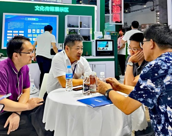 邮政展区吸引了众多行业客户观摩与咨询。倍康信息技术有限公司在省内多家三甲医院均有合作就诊平台,在现场,该公司代表与邮政工作人员洽谈资源共享、共同打造医院场景等事宜。